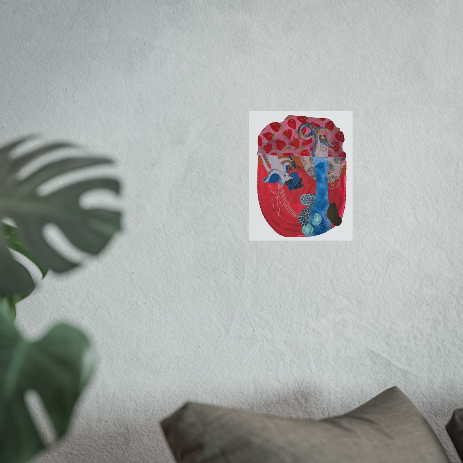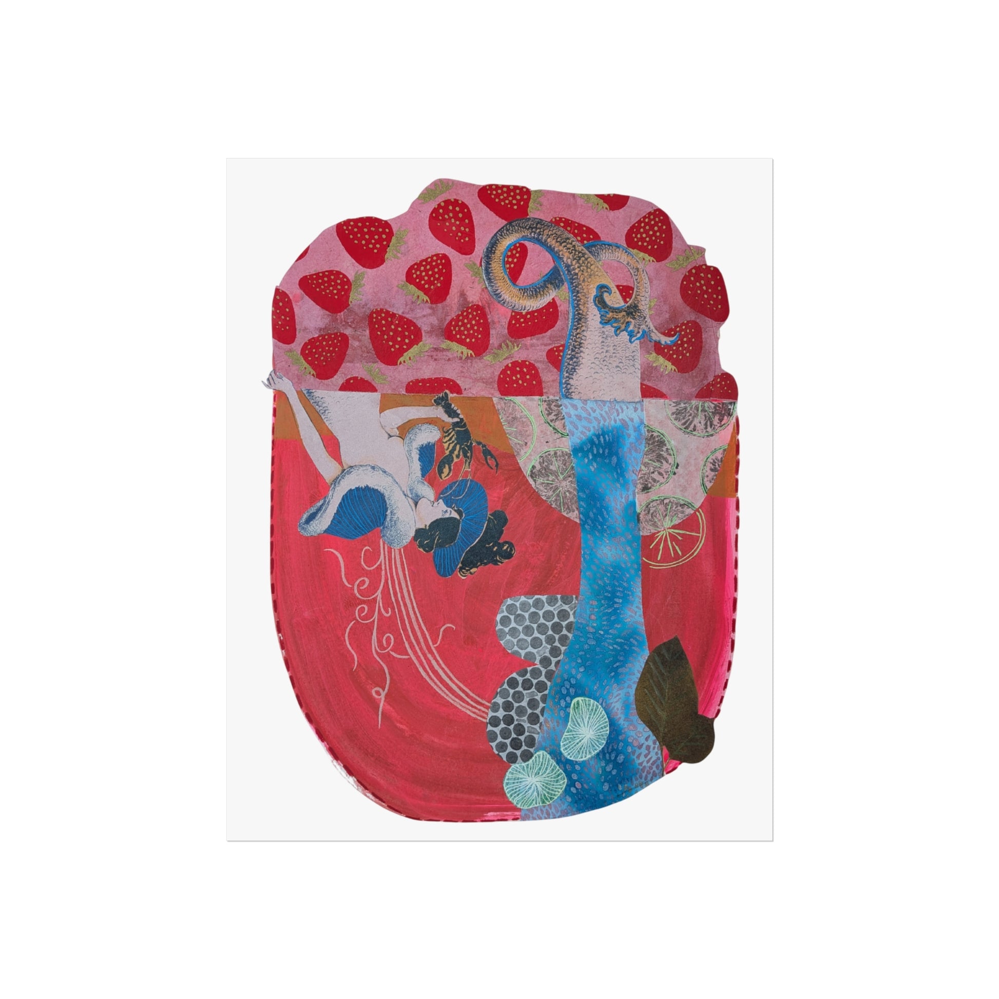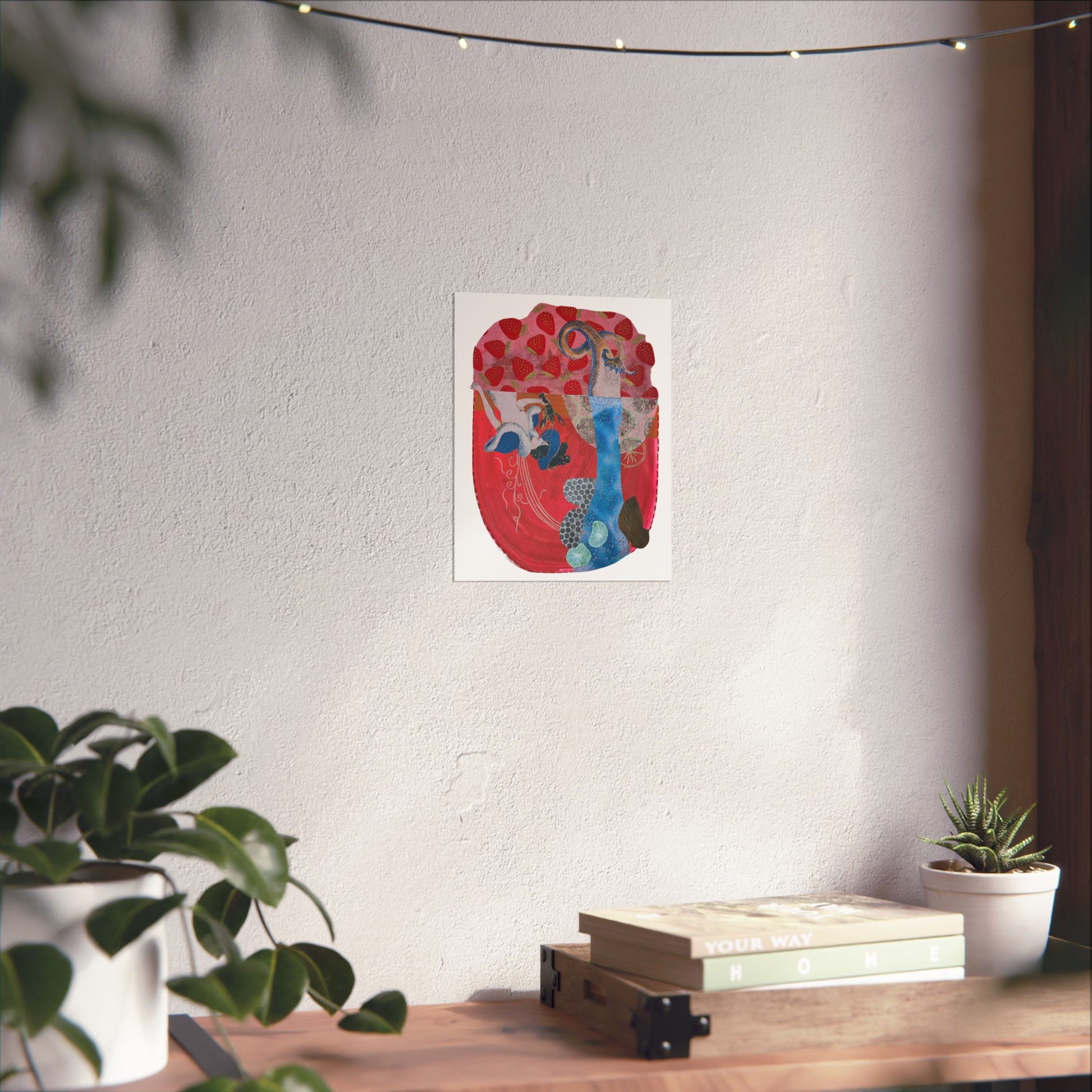 This gallery-grade fine art poster brings a playful, layered collage into your space — a vivid wash of coral and raspberry tones, patterned textures, and whimsical shapes. The artwork feels intimate and curious, like a page torn from an artist’s sketchbook where bold brushstrokes meet delicate paper patterns. Hang it over a reading nook or mix it into a gallery wall to add a warm, handcrafted pulse to a room. It’s for people who collect color studies, cherish tactile composition, and love artwork that feels both modern and quietly eccentric.
