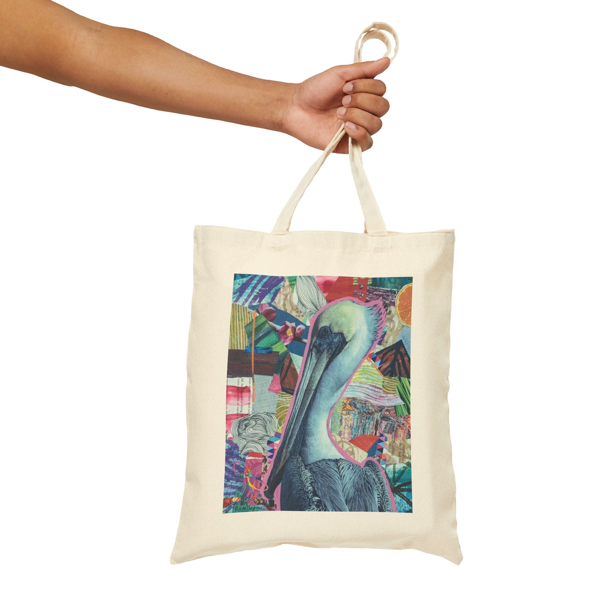 A sturdy cotton canvas tote that carries color and curiosity wherever you go. The heavy 12 oz weave holds its shape while the long, reinforced handles sit comfortably over your shoulder. A bold, collage-style pelican print brings an artful, seaside-meets-street vibe — bright fragments of color and texture layered behind the bird make this tote feel like a little gallery you can take with you. It’s the kind of bag that holds groceries, sketchbooks, market finds, or a day’s worth of plans, and still looks lively at the coffee shop or on a coastal walk. Simple, dependable construction from natural or black canvas keeps the focus on the artwork and the stories you collect along the way.